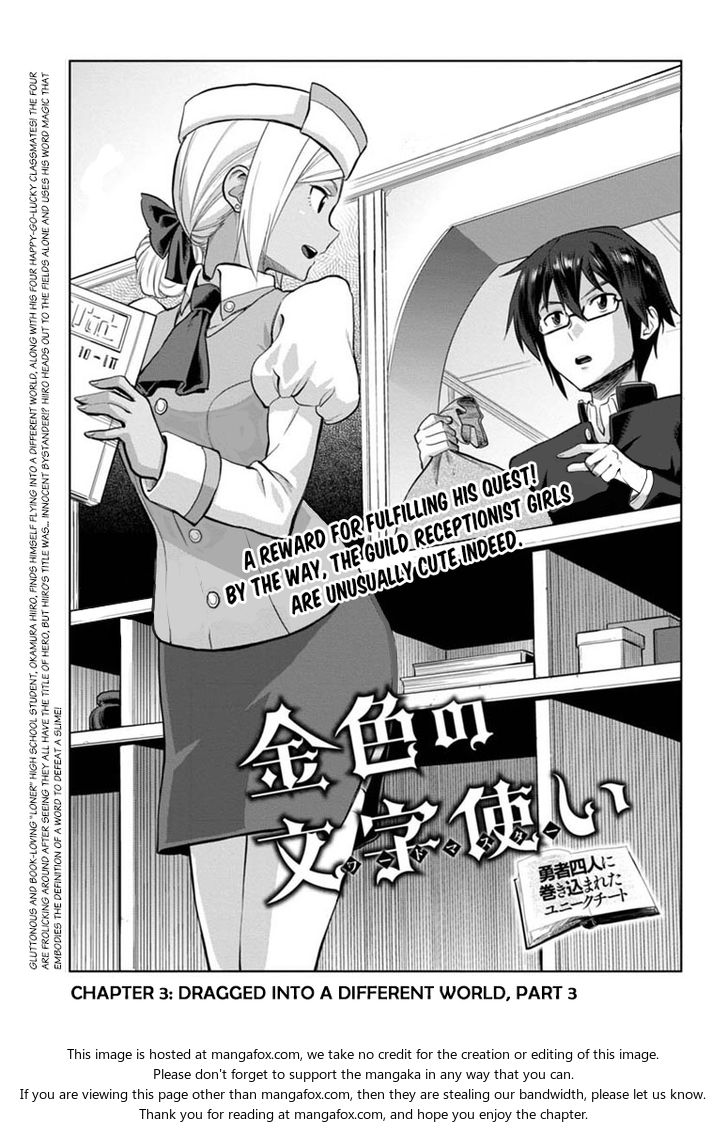 Konjiki no Moji Tsukai - Yuusha Yonin ni Makikomareta Unique Cheat - 01 - Vol.01 Chapter 003